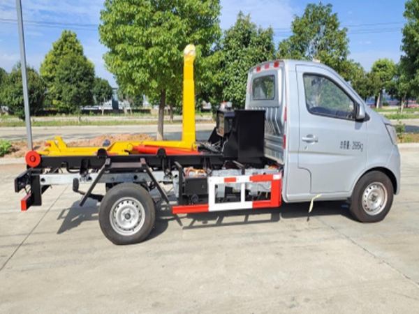 純電動(dòng)車廂可卸式垃圾車是在純電動(dòng)二類底盤的基礎(chǔ)上,加裝垃圾箱勾臂、液壓系統(tǒng),由機(jī)械、液壓